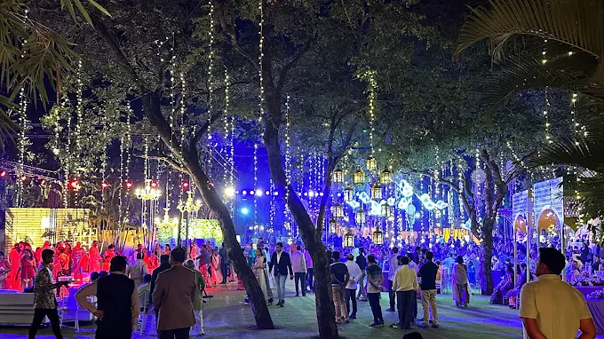 The garden is thoughtfully designed with an aesthetic balance of greenery, floral arrangements, water features, and open recreational areas. Upon entering, you are greeted with manicured lawns and neatly arranged flower beds that burst into color during different seasons of the year. Tall trees provide shade and a cool ambiance, making it a perfect retreat even during warmer months. The natural beauty of Shagun Gardens not only delights the eyes but also creates a calming environment that promotes relaxation and mindfulness.